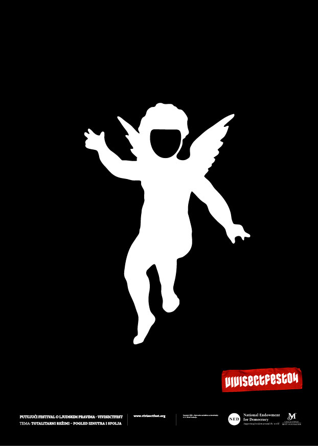 Poster and new identity for VIVISECFEST 04 (topic: fallen angels of ideology).